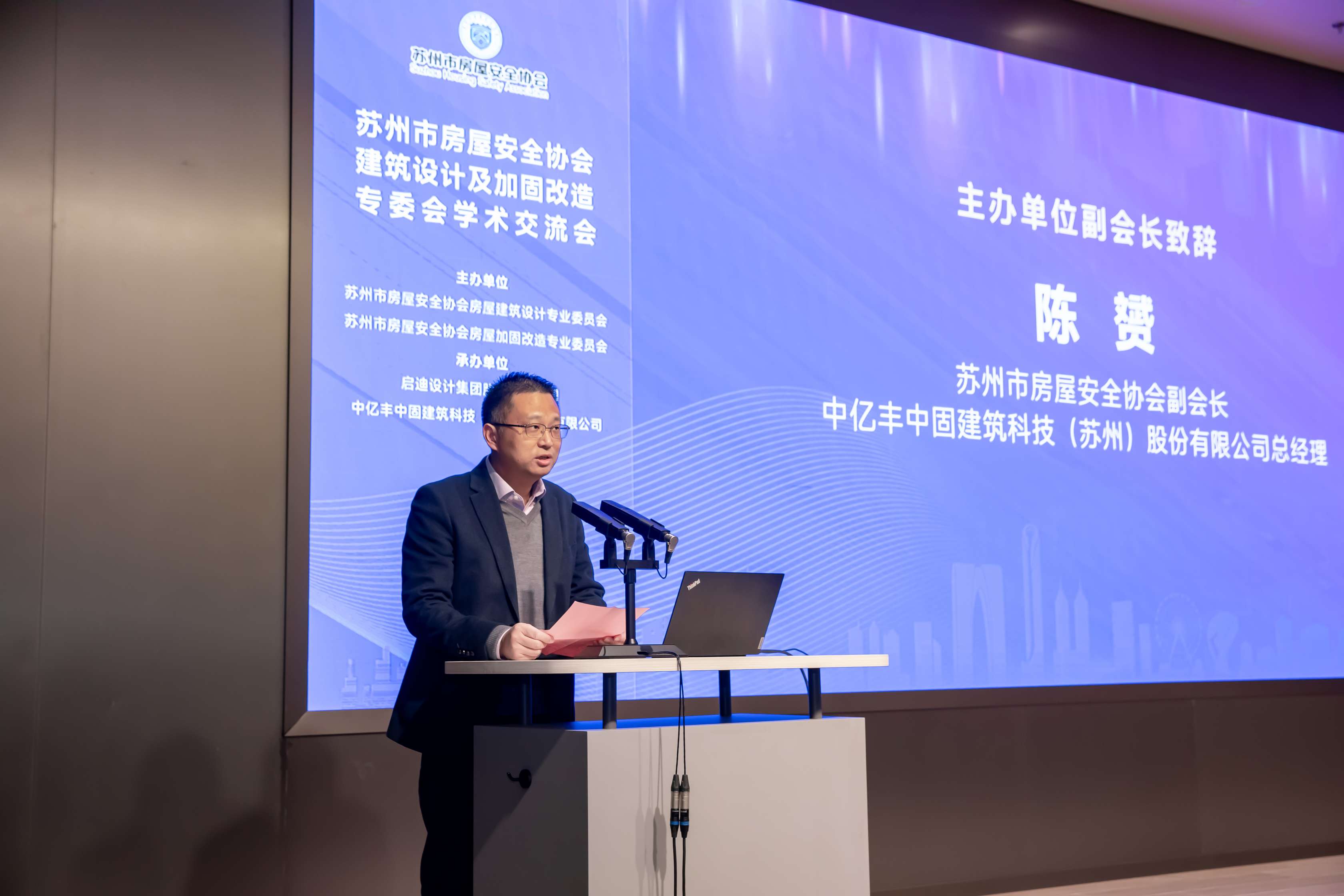 协会副会长、中亿丰中固建筑科技(苏州)股份有限公司总经理陈赟代表苏州市房屋安全协会致欢迎词。他回顾了苏州在城市更新方面的扎实进展,以及苏州城市治理与行业协作的成果。强调城市更新不仅是空间焕新,更是文化传承、功能升级与民生改善的综合体现。作为深耕城市更新领域的实践者,中固建科积极投身于苏州既有建筑改造、历史街区活化、公共空间品质提升等多元场景,积累了丰富经验并贡献了专业力量。未来协会将继续发挥引领作用,助力会员单位在城市更新中把握机遇、承担责任,共同建设更具活力与人文魅力的新苏州。