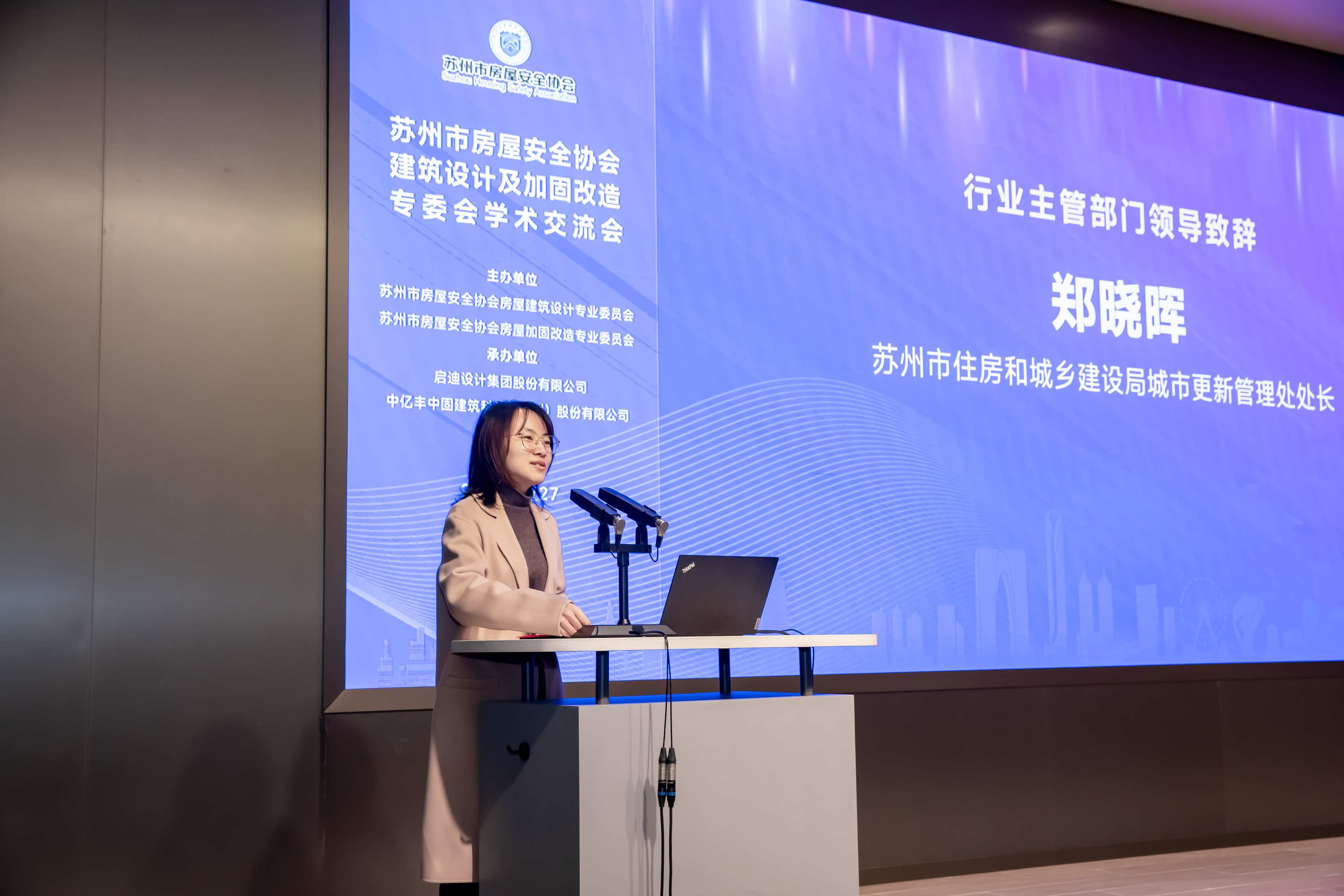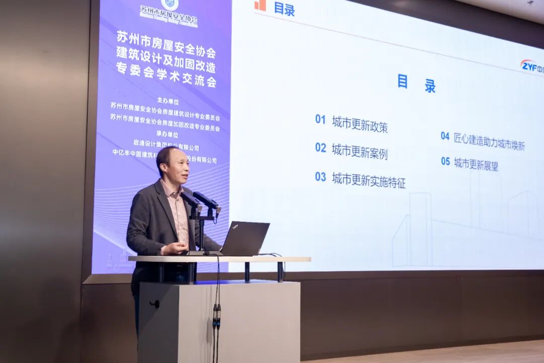 霜染秋华,聚力同行。2025年11月27日上午,由苏州市房屋安全协会房屋建筑设计专业委员会、房屋加固改造专业委员会联合主办,中亿丰中固建筑科技(苏州)股份有限公司、启迪设计集团股份有限公司共同承办的“绘更新蓝图,固安全根基”城市更新专题讲座在启迪设计大厦负一层报告厅隆重举行。苏州市住房和城乡建设局相关领导、苏州市房屋安全协会会员单位代表、拟入会单位代表等齐聚一堂,共话城市更新新路径,共探行业发展新机遇。