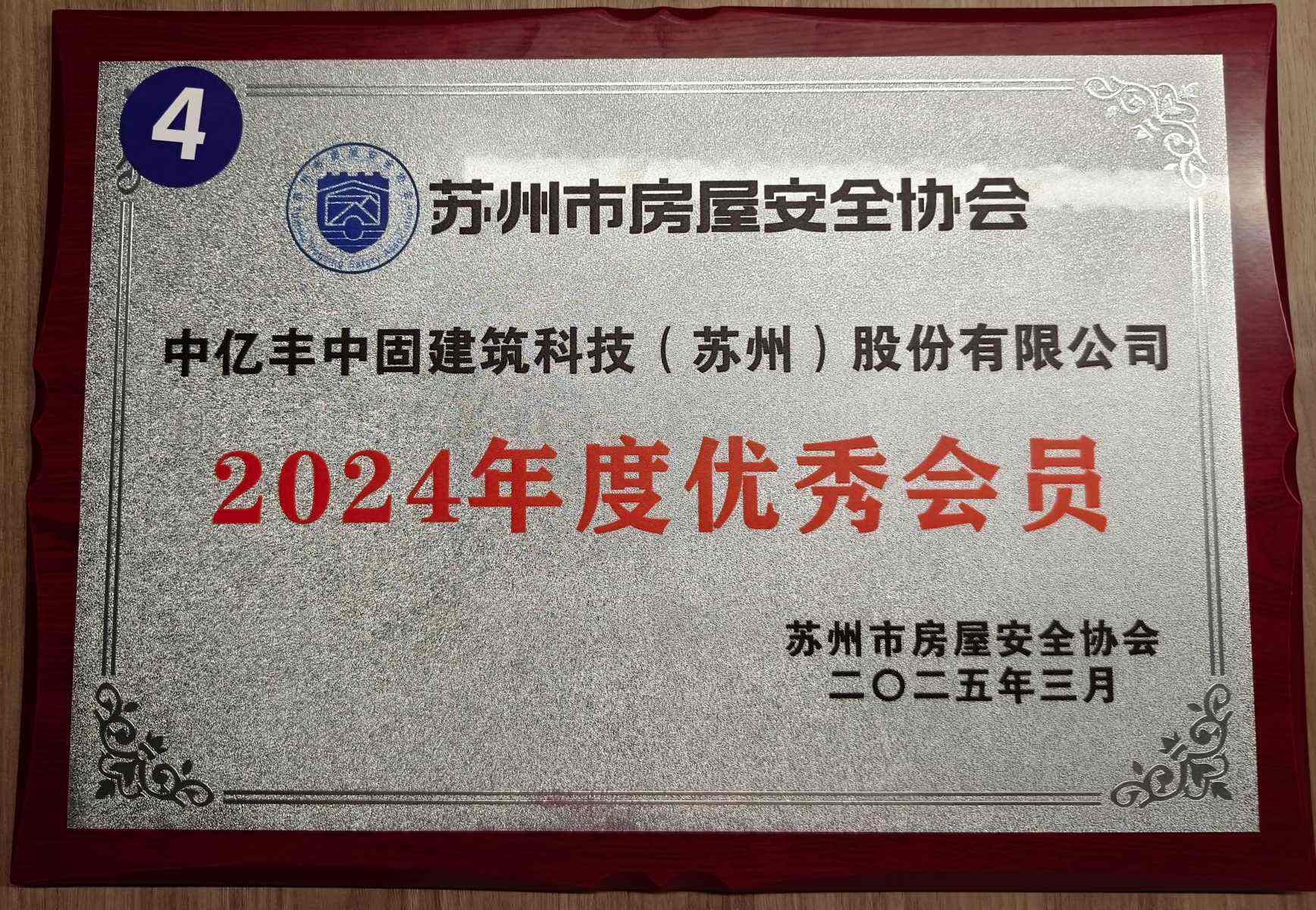 3月,在苏州市房屋安全协会2024年度评选中,中亿丰中固建筑科技(苏州)股份有限公司凭借在建筑安全领域的卓越表现,荣获"优秀会员"称号。
