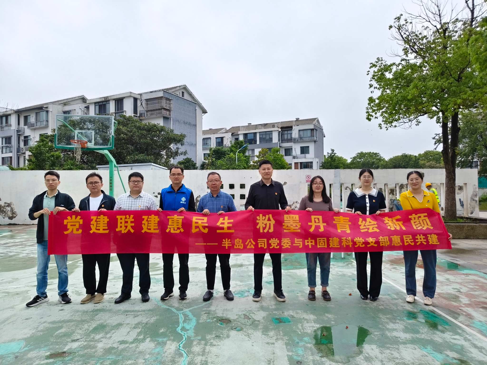签约后,中固建科施工团队迅速开展便民服务,精细粉刷社区活动区斑驳墙面,焕新社区环境面貌。